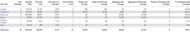 Number of Estimates with Overages: Number of estimates that went over their sub limit and/or aggregate limit
