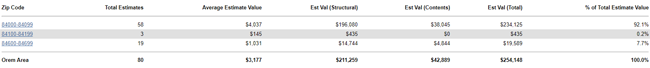This report displays estimate value information by zip code, helping you track the work completed in ZIP code areas.