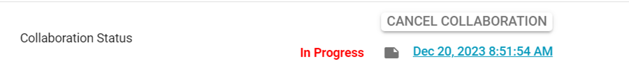 In the Details tab, the Collaboration Status is updated to In Progress, and the collaborator information appears.