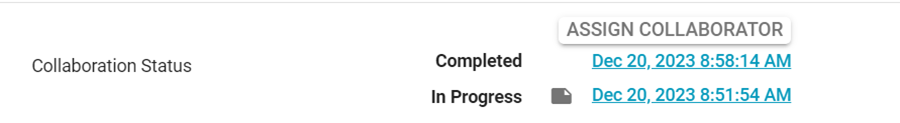 - Select a returned estimate, and look at the Assignment Detail page. Under Workflow Status, go to Collaboration Status and select Assign Collaborator.