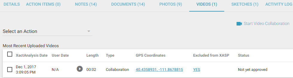 - Open an assignment in XactAnalysis, select the Videos tab, and click Start Video Collaboration. You will be taken to the ClaimXperience site.