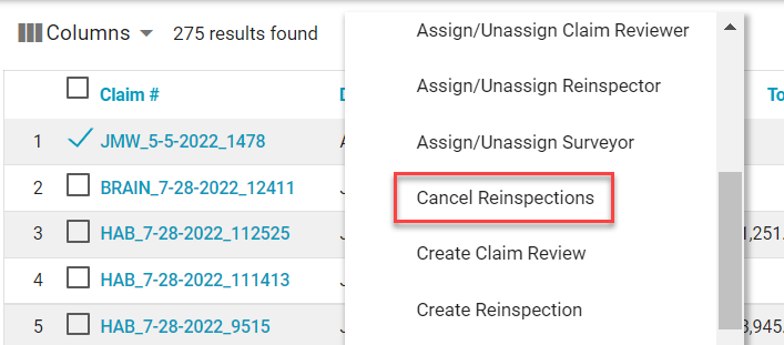 We also added the Cancel Reinspections option to the Select an Action menu.
