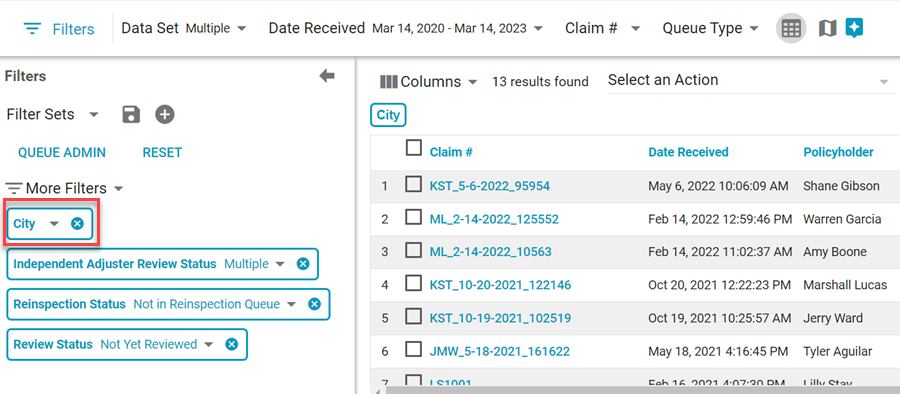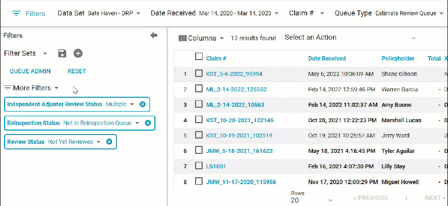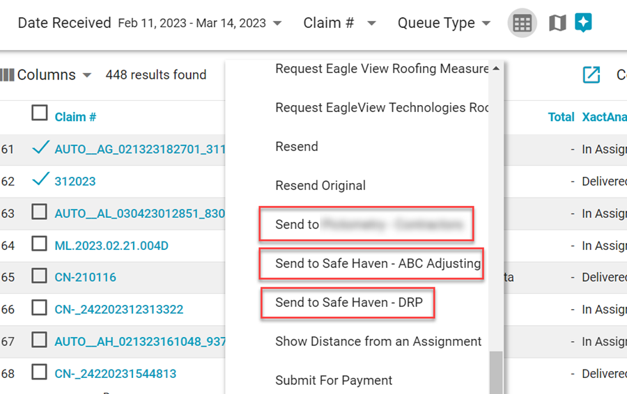 We also added a new Roof Damage column and Roof Damage filter. The filter allows you to filter claims by Partial Repair/Replacement, Total Replacement, None, or Both. The column displays the type of roof damage for each claim.