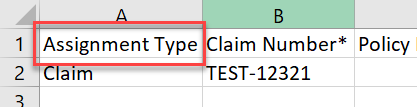 We added an Assignment type column to the Bulk Assignment Import template. You can now specify whether each assignment falls under the following categories: claim, structural, contents, FEMA, or task. When you add an assignment type to the template, you must include the entire name without any misspellings.