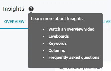 Insights lets you analyze your data like never before! Simply type what data you want to see into the search bar, and Insights will create a report for you. From there, you can create interactive graphs and customized liveboards.