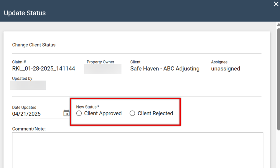 Previously, if your account required the New Status field when users updated the QA and Client statuses, the QA Approved or Client Approved options were automatically selected by default. In this release, we added a new option where you can require your users to manually select the new status when they update the QA or Client statuses.