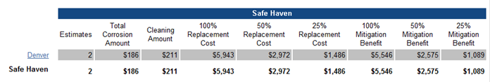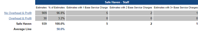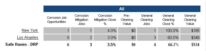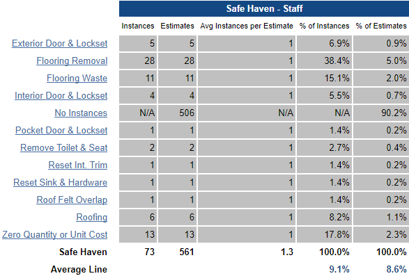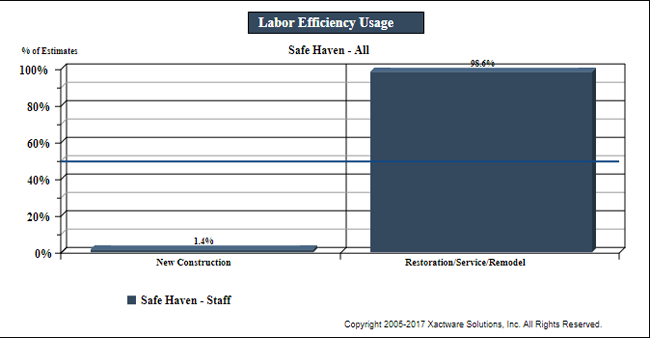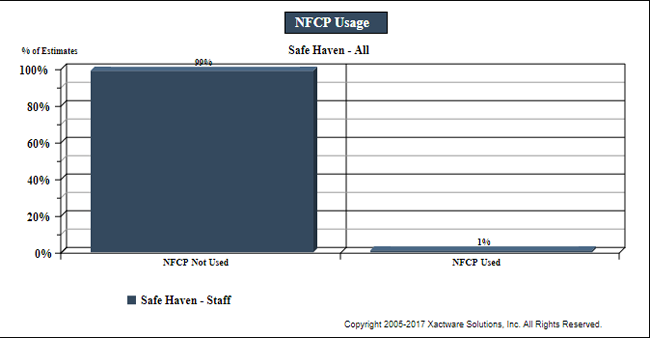 This report displays the number of fire/smoke/soot claims and compares that to the number of estimates that used pre-cleaning items, helping you monitor the frequency of corrosion mitigation use.
