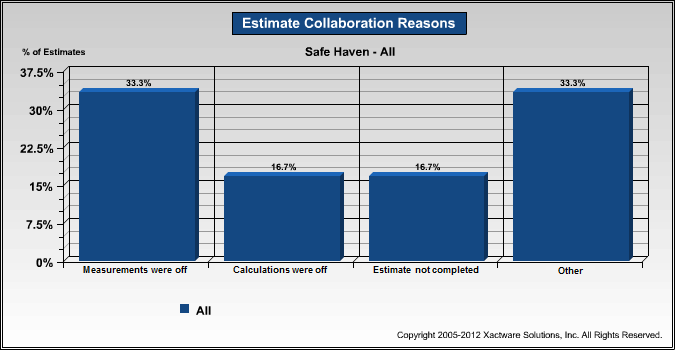 This report displays collaborated estimate data by reason for collaboration, helping you track reasons estimates are collaborated.