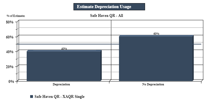 This graph displays the percentages of all estimates with or without depreciation applied to line items.