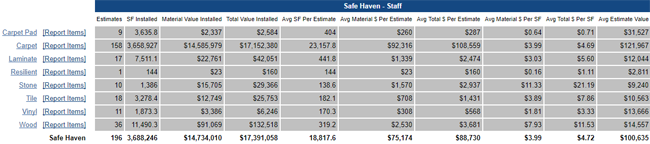 Columns for each flooring type (All, Carpet, Ceramic Tile, Vinyl, and Wood)