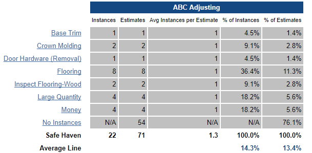 Specific pricing categories (like Doors, Drywall, Floor Covering – Carpet, Roofing, etc) (Pricing categories are only shown if it contains a code-upgrade line item)