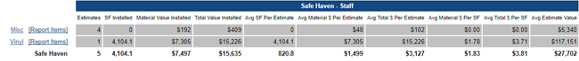 Avg Material $ per Estimate: Average value of material per estimate (Material Value / Estimates)