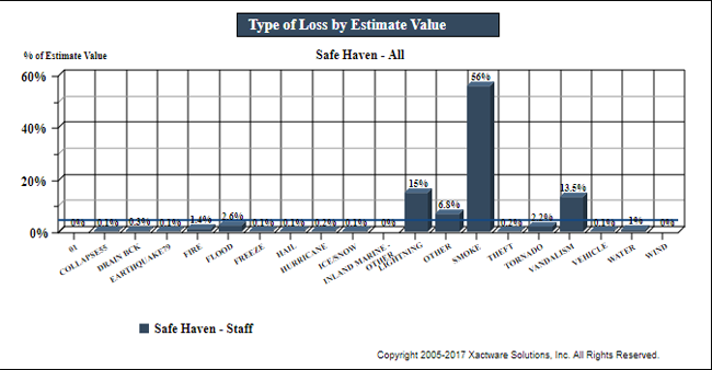 % of Total Value: The percent of the total value of all estimates in the data set with this cause of loss (Total value of claims with this cause of loss / Total value of all claims)