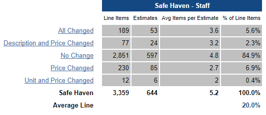 Average Estimate Amount: Average estimate dollar amount (Estimate Amount / Estimates)