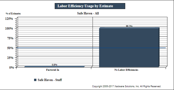 This report displays the percentage each contents department contributed to the selected estimates’ total line item value, helping you track the types of line items used most frequently.