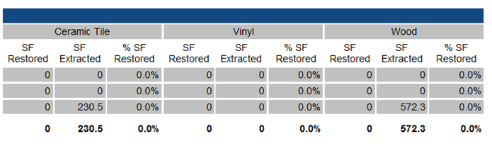 % SF Salvaged: Percentage of affected flooring that was salvaged