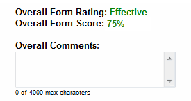 Your company determines what overall percentage merits an Effective rating. Anything below that percentage is automatically rated as Ineffective. The overall rating scores all categories on the form equally unless your company has opted to weigh some categories more than others.