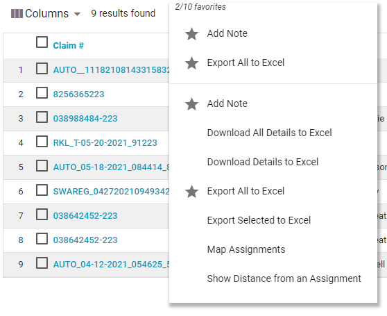 - You can hover over an assignment marker to view its claim number and the name of its insured. Click on the claim number to view it in Assignment Detail.