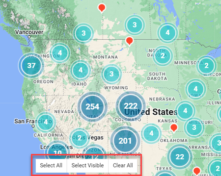 - Click Select Visible at the bottom of the map to select all of the assignments in the visible area of the map.