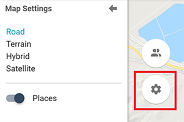 The map settings button on the left side of the map allows you to change the appearance of the map. It also allows you to enable or disable the markers for local places and landmarks.