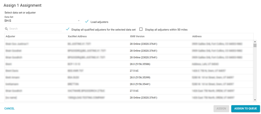 - Assign the assignment to an entire data set or to a specific adjuster.