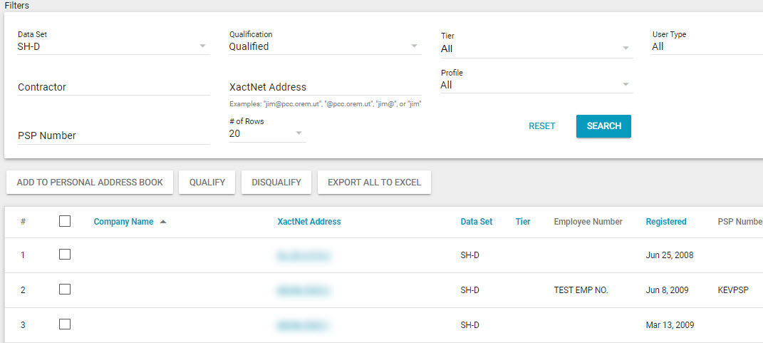 This filter allows you to see the adjusters or contractors within a selected qualification tier.
