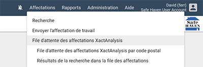 Sélectionner File d’attente des affectations dans le menu Affectations.