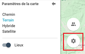 Le bouton Paramètres à gauche de la carte vous permet de modifier l’apparence de la carte. Il vous permet également d’activer ou de désactiver les marqueurs pour les lieux et points de repère locaux.
