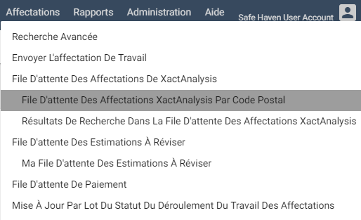 Accéder à la file d’attente des affectations par code postal