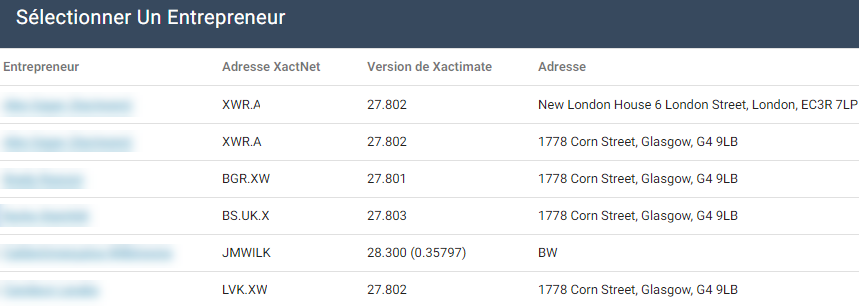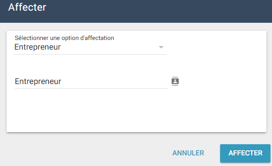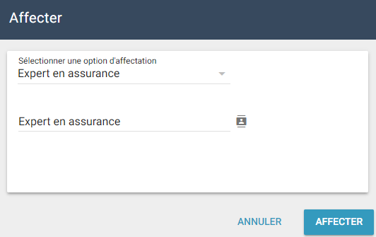 La page Sélectionner un expert en sinistres/entrepreneur apparaît. Cliquez sur un expert en sinistres/entrepreneur. Cliquez sur Affecter.