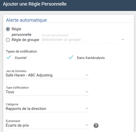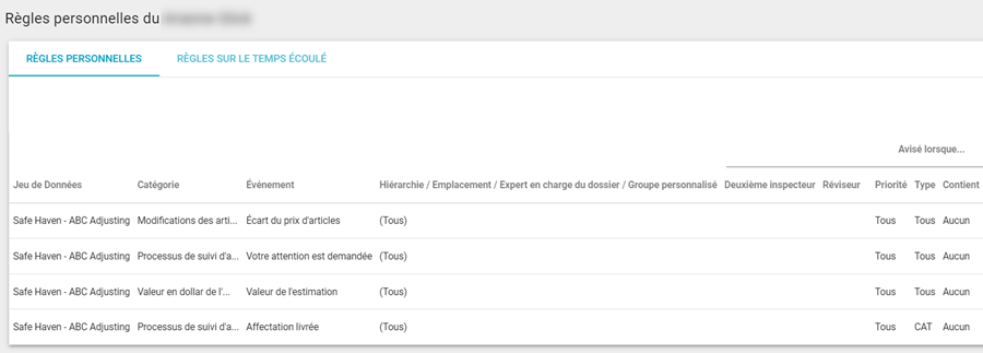 Notifications en lien avec des Règles personelles