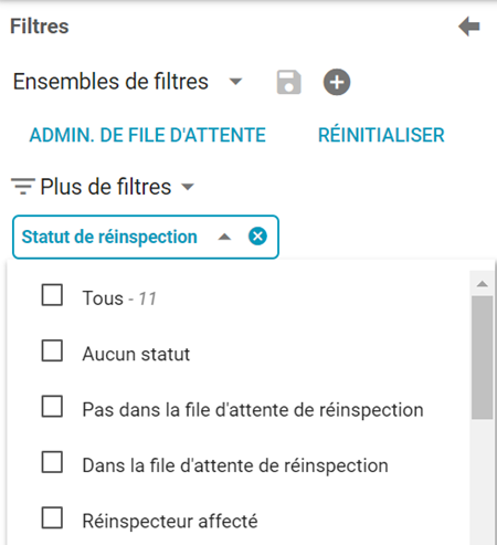 Filtrer par statut de réinspection dans Recherche