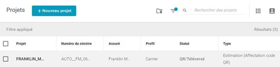- Une fois envoyée, l’affectation QR s’affiche dans vos projets.