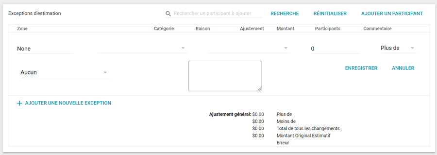 Les ajustements globaux s’affichent sous la liste des exceptions.