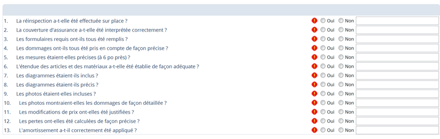 - Dans la section suivante, répondez aux questions de réinspection en sélectionnant les boutons radio Oui/Non. Vous pouvez commenter une réponse individuelle en utilisant le champ Commentaires à droite de la réponse.