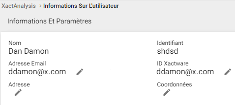 - À la page ID Xactware, modifiez les champs suivants : ID Xactware, Prénom, Nom de famille, Numéro de téléphone, Adresse courriel secondaire, Mot de passe.