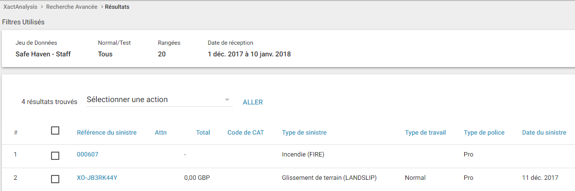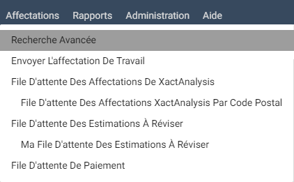 Les affectations sont parfois réaffectées à un autre expert en sinistres ou jeu de données. Utilisez ce menu pour rechercher les affectations qui ont été ou n'ont pas été réaffectées.