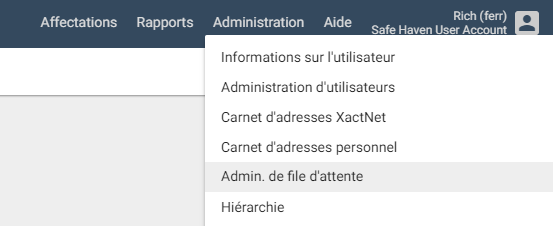 - Sélectionnez Admin. de file d’attente à partir du menu Administration.