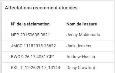 La section Affectations récemment consultées affiche une liste d'affectations que vous avez récemment consultées.