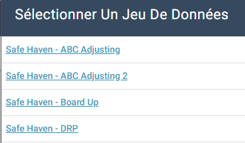 - Pour attribuer un expert en sinistres/entrepreneur à partir d'un autre jeu de données, sélectionnez le bouton SmartList des jeux de données. La page Sélectionner un jeu de données apparaît. Cliquez sur un jeu de données.