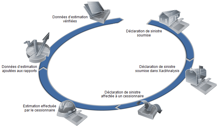 L’assuré soumet une déclaration de sinistre à la compagnie d’assurance suite à des dommages ou des pertes. Cette étape n’est pas effectué dans le système XactAnalysis.