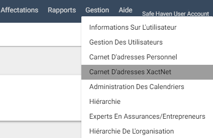 Tapez l’ensemble ou une partie de l’adresse XactNet d’un expert en sinistres/entrepreneur pour rechercher un cessionnaire en particulier.